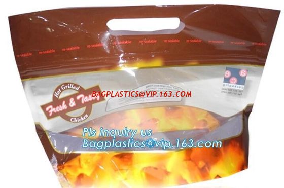 Microwave Grilled Hot Chicken Bag: Hot Roast Bags With Zip Top: Stand Up Roasted Chicken Packaging